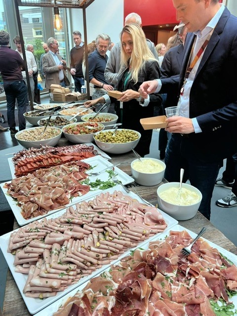 Tussen alle gerechten en drankjes door was er ruimte voor een toespraak en live muziekoptredens. Dat gaf de borrel een extra feestelijke dimensie: collega’s genoten niet alleen van het eten, maar ook van de gezellige sfeer en het samen zijn.