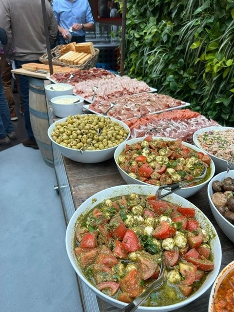 Omdat de borrel plaatsvond aan het einde van de middag, rond de gebruikelijke dinertijd, zorgde Lumineux voor de catering, naast de dranken en warme bittergarnituur. Het menu bracht een vleugje Italië naar Utrecht, met Italiaanse antipasti en verse pasta.