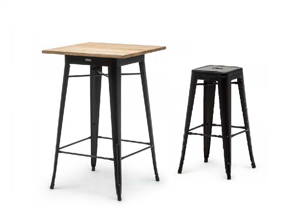 Staset; Tolix statafel 70x70cm inclusief 4 Tolix barkrukken zwart - zwart